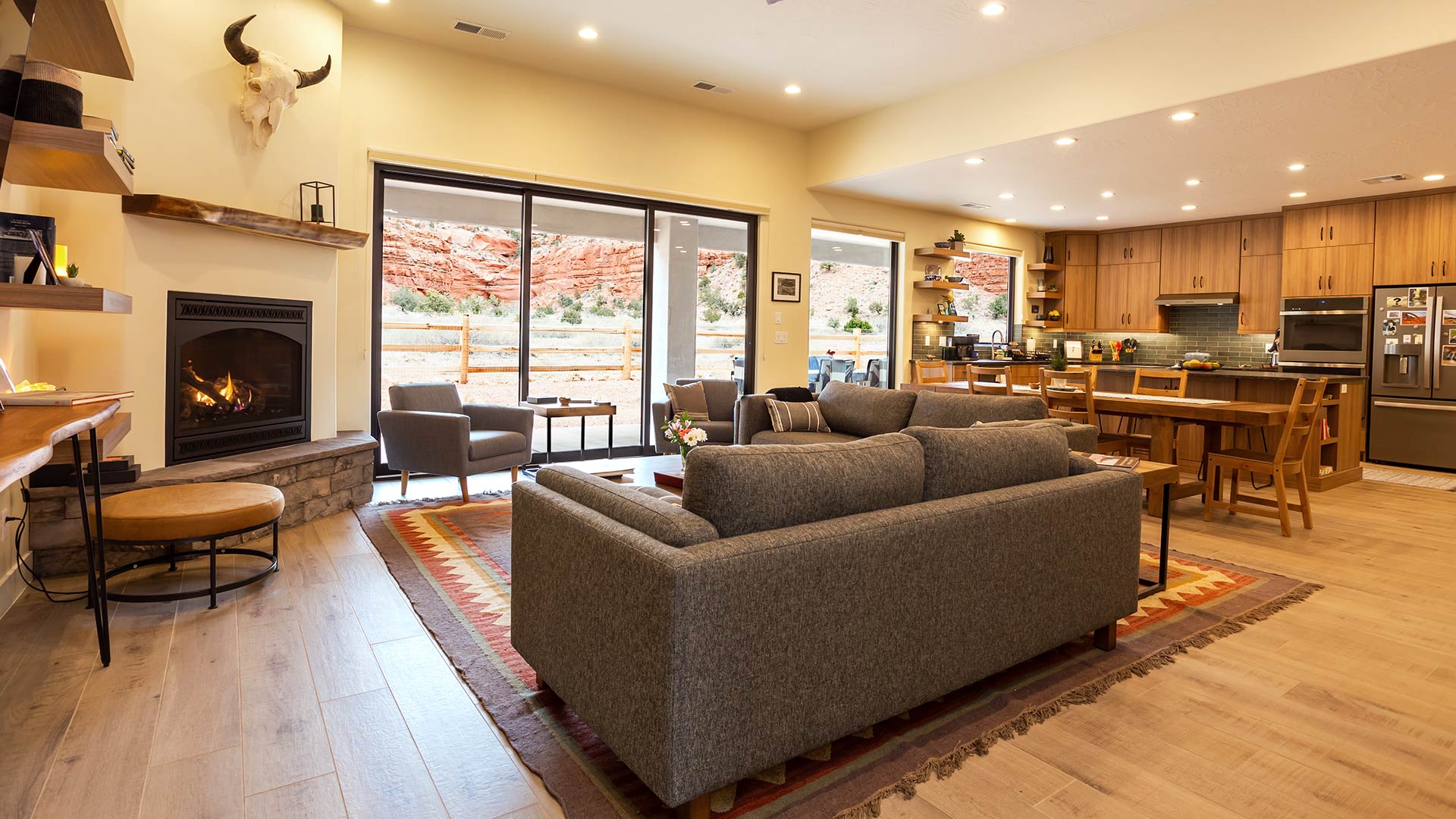 Experience breathtaking views in every direction at Desert Willow, a luxurious vacation home in Kanab’s prestigious La Estancia community. This brand-new 3-bedroom, 3-bath home is designed for comfort, convenience, and memorable stays. Perfect for families and pet-friendly (with $100 pet fee), it features a dedicated workspace, modern amenities, and a rooftop deck with panoramic views. Guests also enjoy access to the community clubhouse, indoor/outdoor pools, hot tubs, gym, and more.