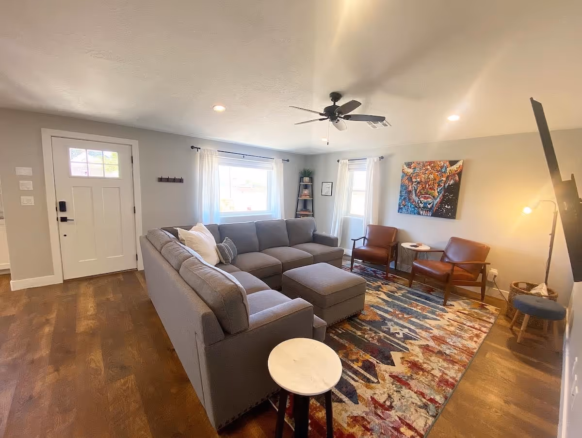 Did someone say game time?! Come enjoy everything southern Utah has to offer in this fun, newly remodeled home with a hot tub and ample yard games for your family to create lasting memories. Located in a quiet neighborhood in the heart of Kanab, our house is within walking distance to all the restaurants and shops. Ideal for families or traveling couples, our fully stocked 3 bedroom and 3 bath home has plenty of open space for group get-togethers as well as privacy for relaxing.