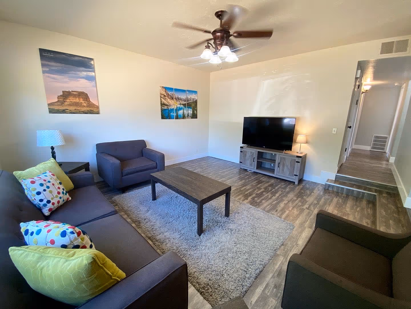 Hayduke's Hideout is a spacious home with four bedrooms and two bathrooms designed with your comfort in mind! We're located on a quiet street only a block away from Jacob Hamblin Park and the Kanab City swimming pool & skatepark. Our home has been renovated with central air conditioning and heating. You're sure to love the clean, modern feel of the entire home.