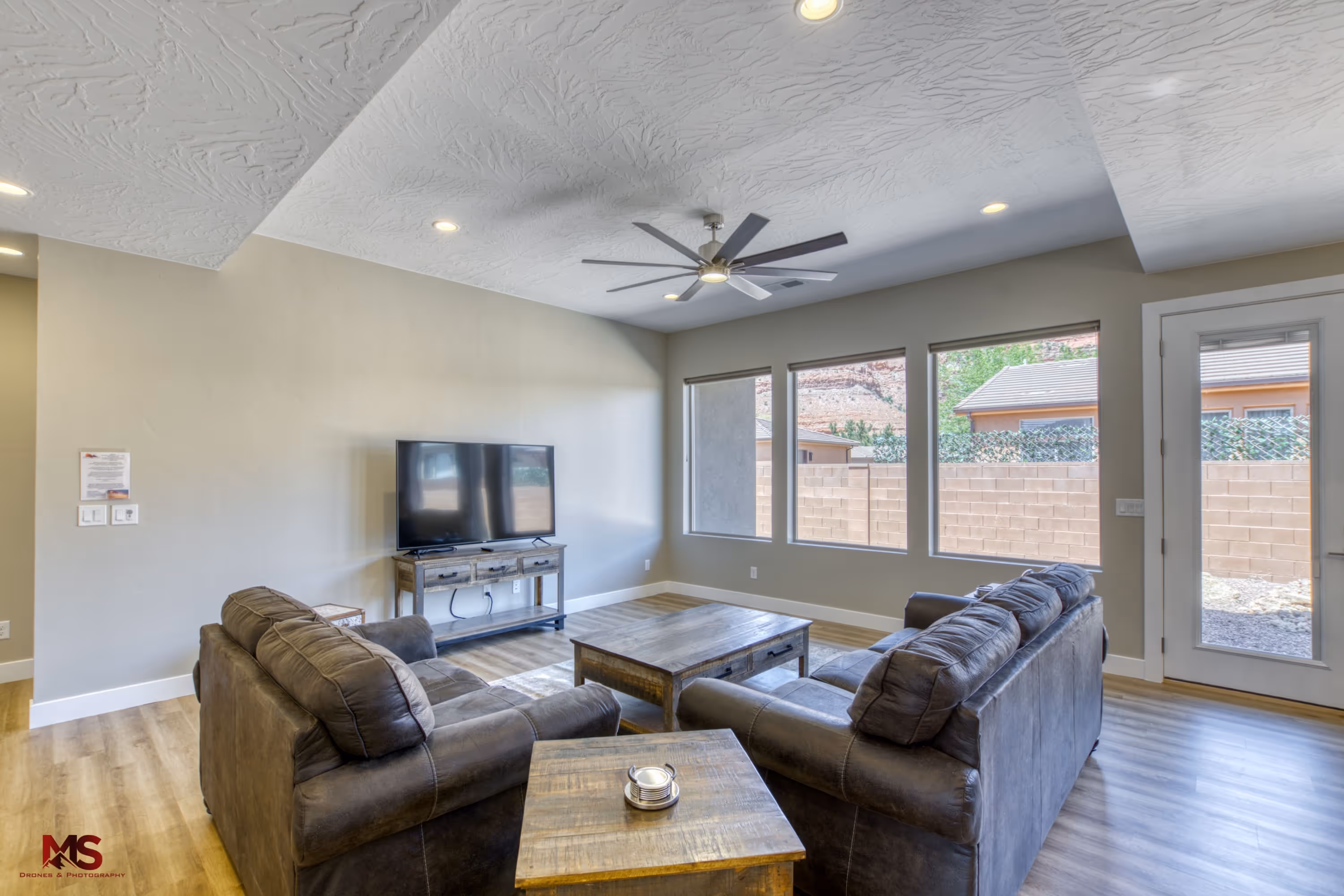 Designed with families in mind: Zion Adventure House offers everything needed for a memorable, magical vacation! In addition to four bedrooms and three bathrooms, you'll have access to the La Estancia community facilities, including an indoor and outdoor pool, hot tub, playground, gym and a brand new Amenity Park coming in summer of 2024. You can also bring your pets with you on vacation, as this home is pet-friendly, and you can use the community dog park right across the street.